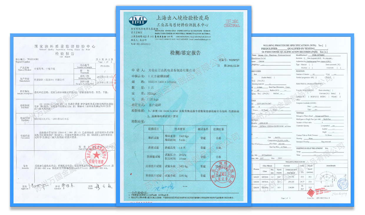 我們嚴(yán)格地運(yùn)行生產(chǎn)過(guò)程的質(zhì)量管控和成品檢驗(yàn),并擁有WPS焊接工藝評(píng)定、C4-H防腐認(rèn)證、罐體鑒定檢測(cè)報(bào)告等,確保給客戶提供高品質(zhì)、高性能的產(chǎn)品